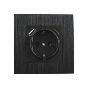 VIPLAST GNIAZDO Z UZIEMIENIEM SCHUKO USB A+C CZARNE Z RAMKĄ ALUMINIOWĄ SZCZOTKOWANĄ