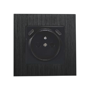 VIPLAST GNIAZDO Z UZIEMIENIEM SCHUKO USB C+C CZARNE Z RAMKĄ ALUMINIOWĄ SZCZOTKOWANĄ