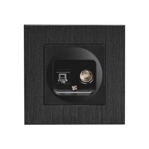VIPLAST GNIAZDO ANTENOWE TV + KOMPUTER CAT 6 CZARNE Z RAMKĄ ALUMINIOWĄ SZCZOTKOWANĄ