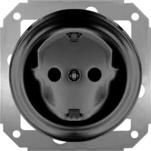 RETRO GNIAZDO Z UZIEMIENIEM SCHUKO CZARNE CERAMICZNE LOFT PRL