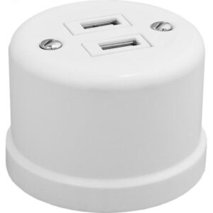 RETRO GNIAZDO PODWÓJNE USB 3.2A NATYNKOWE BIAŁE CERAMICZNE LOFT PRL
