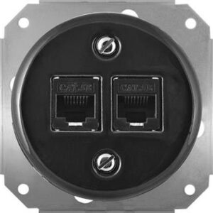 RETRO GNIAZDO INTERNETOWE PODWÓJNE LAN 2xRJ45 KAT.5E CZARNE CERAMICZNE LOFT PRL